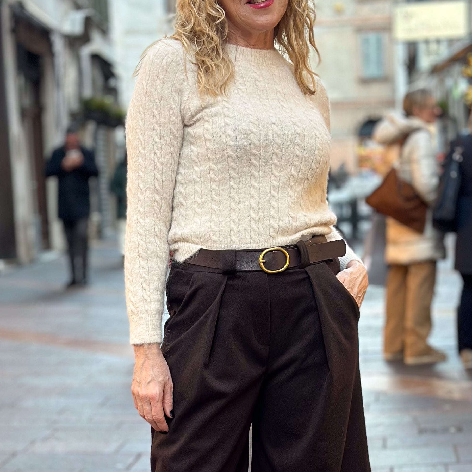 La maglietta in pizzo aggiunge un tocco femminile e delicato, mentre le sling back Susy Mix completano l’outfit con stile e leggerezza. Minimal, chic e curato nei dettagli: un capsule look versatile che unisce comfort e classe in un mix perfetto.