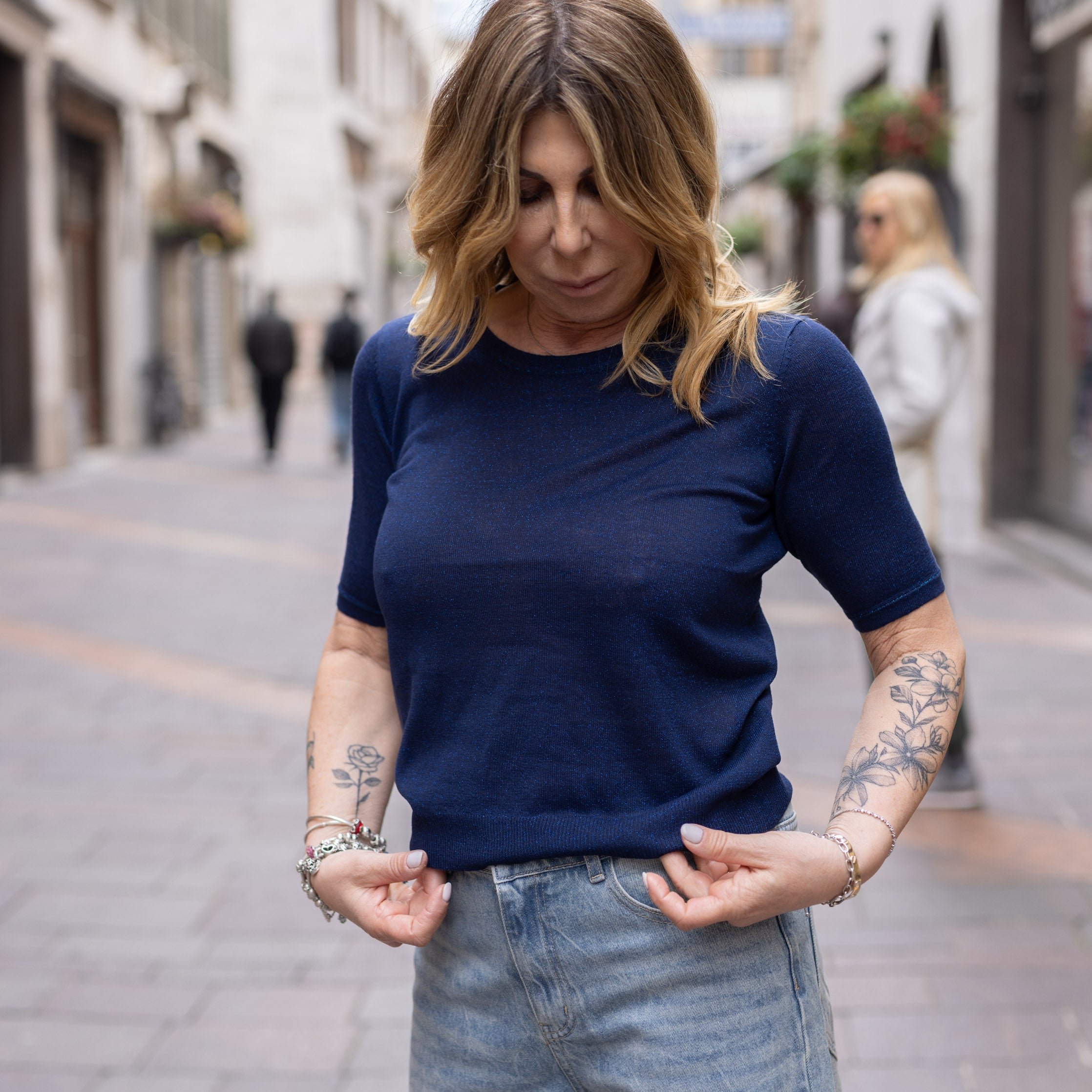 Maglia Brigitta in lurex - manica a 3/4 - Blu