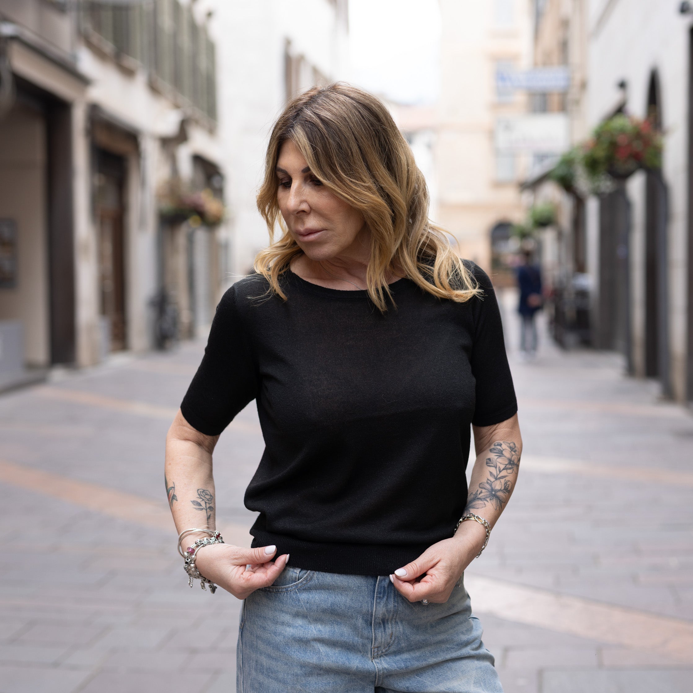 Maglia Brigitta in lurex - manica a 3/4 - Nera