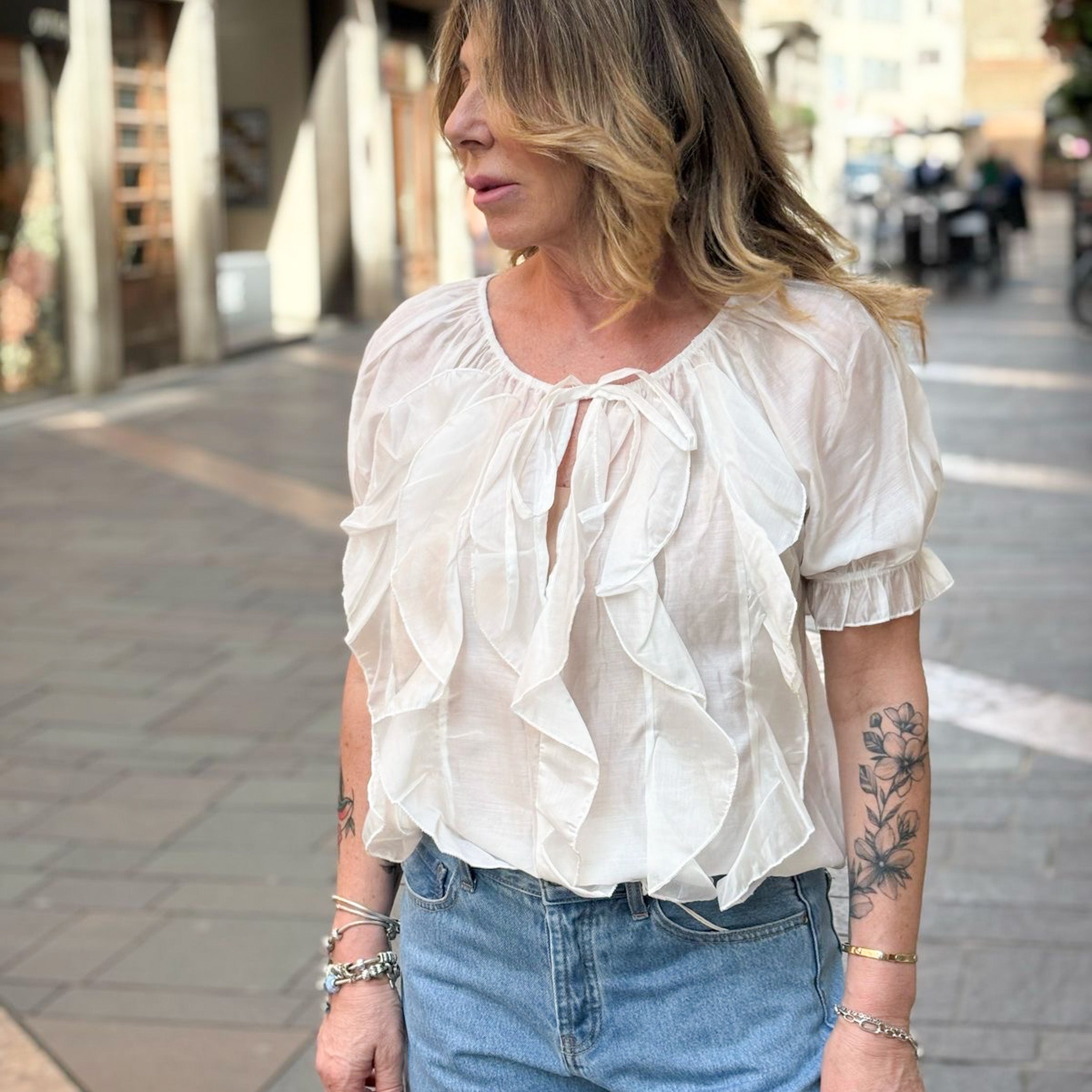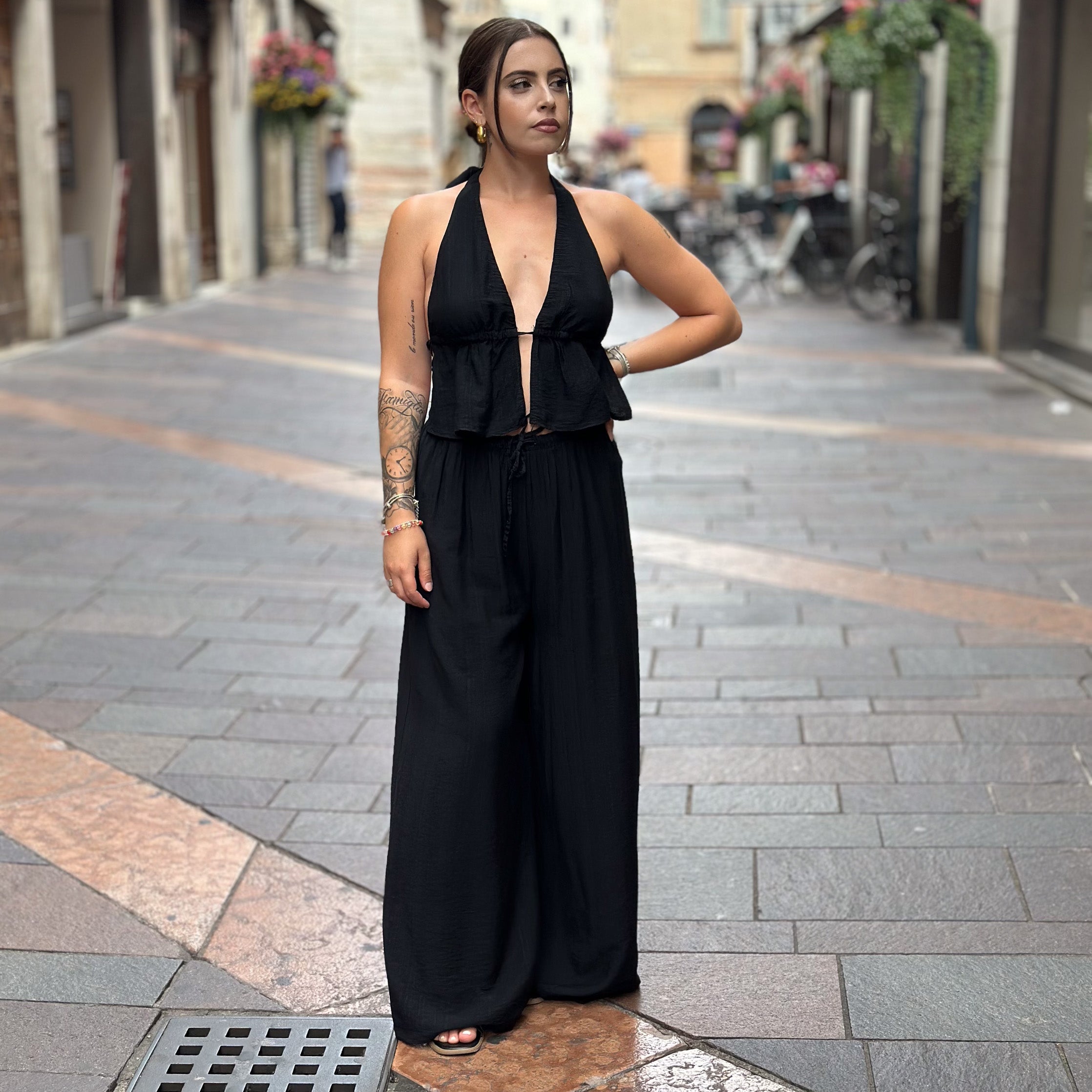 Maglia Brigitta in lurex - manica a 3/4 - Nera